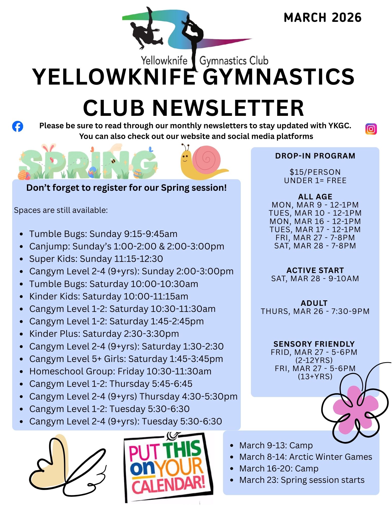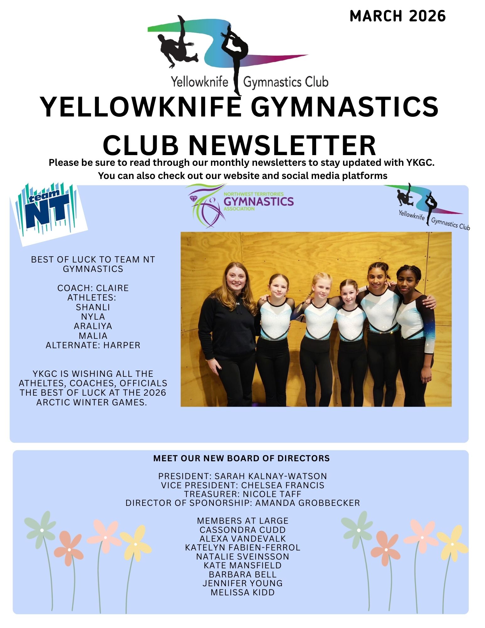Yellowknife Gymnastics Club Elaine Keenan Bengts Gymnastics Centre News MARCH NEWSLETTER posted Mar 6, 2026, 10:47 AM
