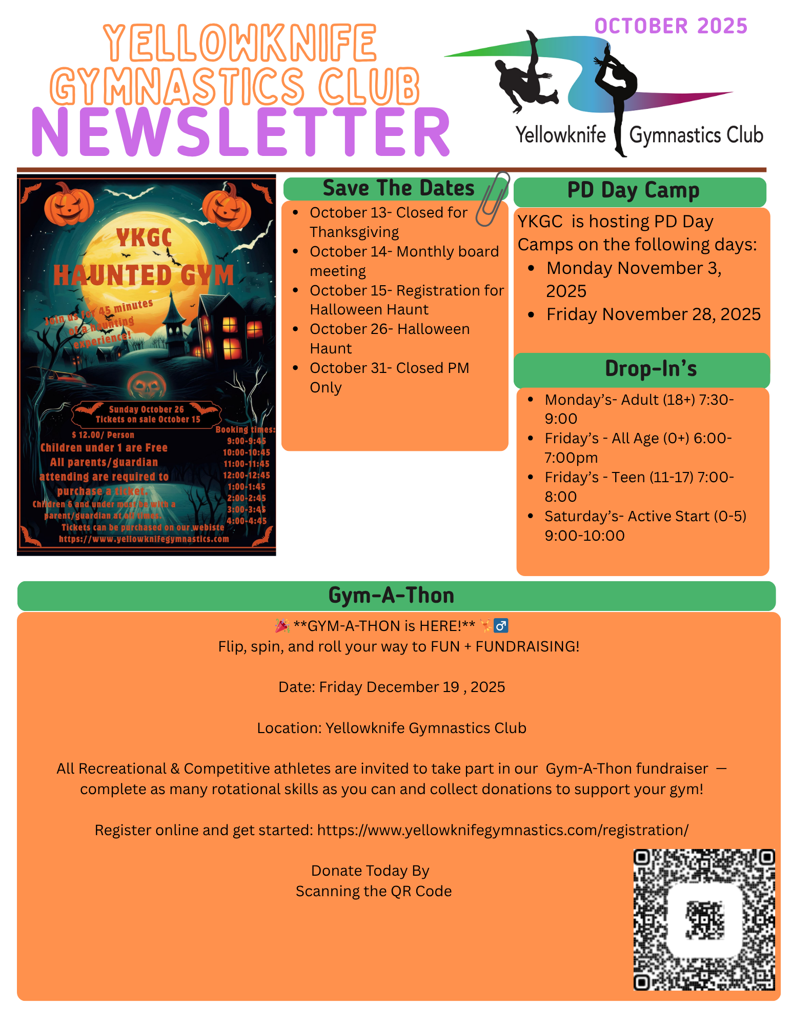 Yellowknife Gymnastics Club Elaine Keenan Bengts Gymnastics Centre News ATHLETE OF THE MONTH posted Oct 9, 2025, 10:34 AM OCTOBER 2025 NEWSLETTER posted Oct 1, 2025, 11:47 AM