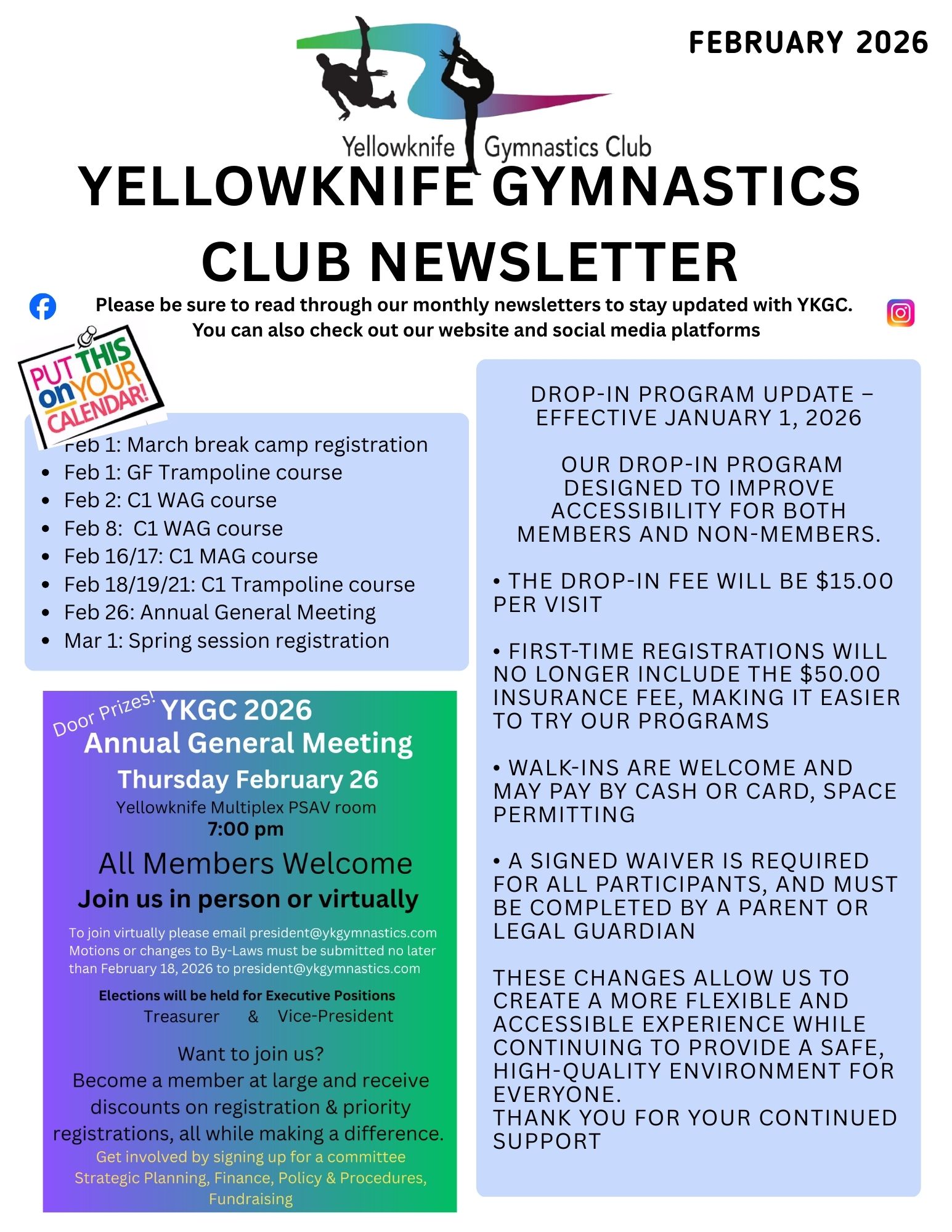 Yellowknife Gymnastics Club Elaine Keenan Bengts Gymnastics Centre News FEBRUARY 2026 NEWSLETTER posted Mar 1, 2026, 12:43 PM